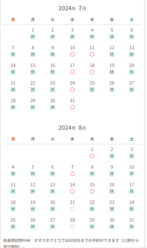 ※あずかるこちゃん予約システムからは、助産師訪問PAM、産前産後ケアハウスアンビリカスの